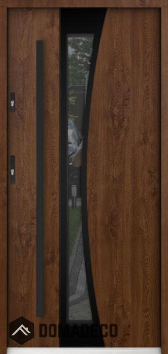 The door is made of stainless steel. Inside it is filled with PUR polyurethane foam and wood. The thickness of the door slab is 2.2 inch. Dual sealing system - one seal is in the dap of the frame and the other is located in the supporting part of the door slab. They reduce vibration and protect your house from losing the heat. They don't change their volume under the influence of atmospheric conditions. The door frame has anti-burglar reinforcements in hinge parts and locking points.