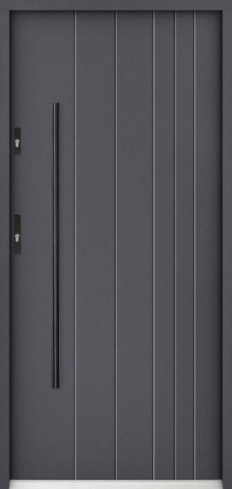 The door is made of stainless steel. Inside it is filled with PUR polyurethane foam and wood. The thickness of the door slab is 2.2 inch. Dual sealing system - one seal is in the dap of the frame and the other is located in the supporting part of the door slab. They reduce vibration and protect your house from losing the heat. They don't change their volume under the influence of atmospheric conditions. The door frame has anti-burglar reinforcements in hinge parts and locking points.
