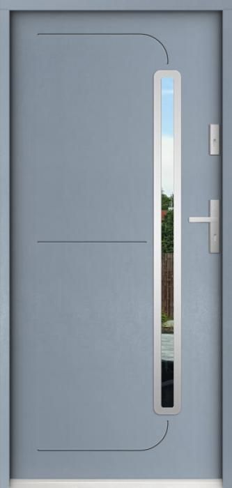 The door is made of stainless steel. Inside it is filled with PUR polyurethane foam and wood. The thickness of the door slab is 2.2 inch. Dual sealing system - one seal is in the dap of the frame and the other is located in the supporting part of the door slab. They reduce vibration and protect your house from losing the heat. They don't change their volume under the influence of atmospheric conditions. The door frame has anti-burglar reinforcements in hinge parts and locking points.