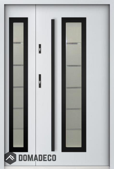 The door is made of stainless steel. Inside it is filled with PUR polyurethane foam and wood. The thickness of the door slab is 2.2 inch. Dual sealing system - one seal is in the dap of the frame and the other is located in the supporting part of the door slab. They reduce vibration and protect your house from losing the heat. They don't change their volume under the influence of atmospheric conditions. The door frame has anti-burglar reinforcements in hinge parts and locking points.