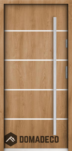 The door is made of stainless steel. Inside it is filled with PUR polyurethane foam and wood. The thickness of the door slab is 2.2 inch. Dual sealing system - one seal is in the dap of the frame and the other is located in the supporting part of the door slab. They reduce vibration and protect your house from losing the heat. They don't change their volume under the influence of atmospheric conditions. The door frame has anti-burglar reinforcements in hinge parts and locking points.