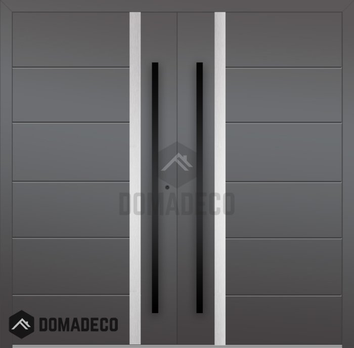 The contemporary design of the LIM 41 double front door, with its distinctive strip accents, makes a bold statement about your refined taste and adds a touch of architectural flair to your home exterior. Constructed from high-quality aluminum, this door is not only durable and long-lasting but also resistant to the elements, ensuring years of reliable performance with minimal maintenance required.