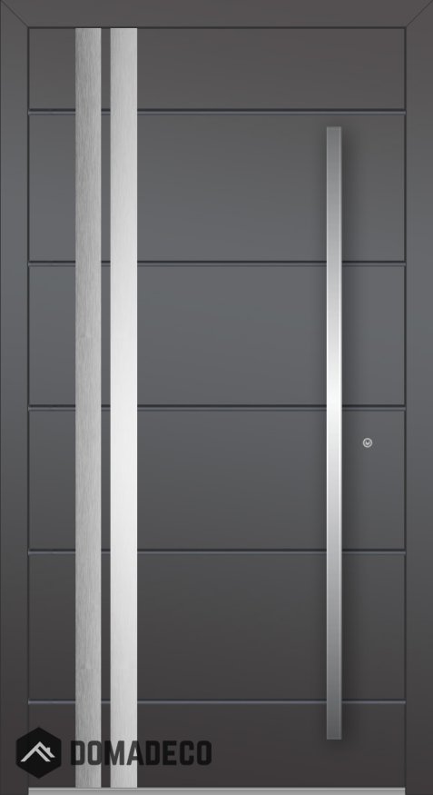 LIM AD10 - aluminum modern hinged front door with silver stripes