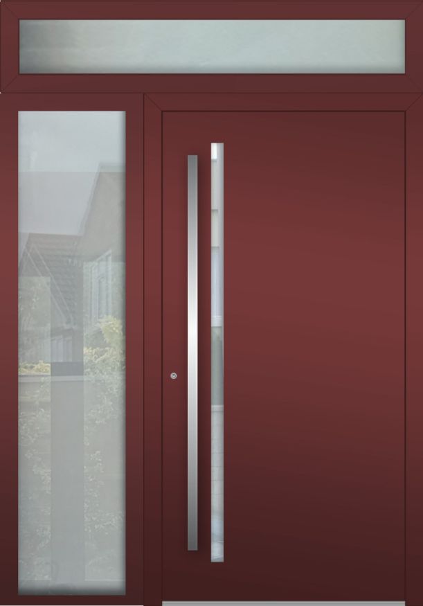 Aluminum LIM hinged door with left and top sidelight (view from the outside)