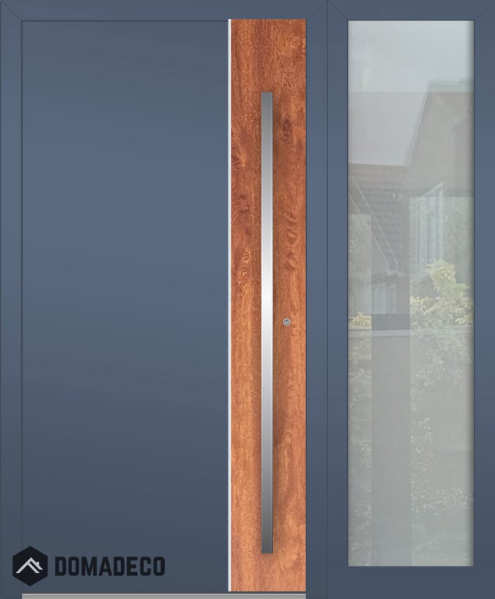 Aluminum LIM hinged door with right sidelight (view from the outside)