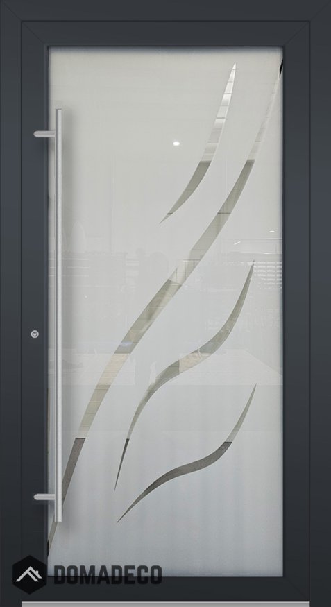 LIM Glass S11 - frosted aluminium entry door with transparent decor
