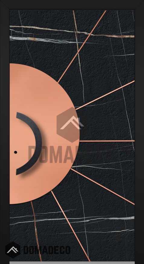 LIM Sahara - aluminum hinged door covered with Sahara Noir sintered quartz and copper sheet