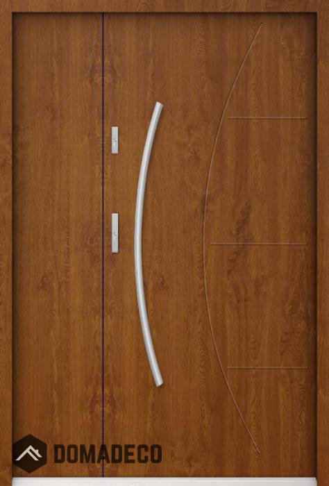 The door is made of stainless steel. Inside it is filled with PUR polyurethane foam and wood. The thickness of the door slab is 2.2 inch. Dual sealing system - one seal is in the dap of the frame and the other is located in the supporting part of the door slab. They reduce vibration and protect your house from losing the heat. They don't change their volume under the influence of atmospheric conditions. The door frame has anti-burglar reinforcements in hinge parts and locking points.