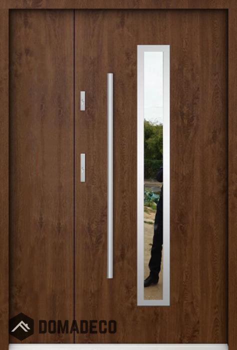 The door is made of stainless steel. Inside it is filled with PUR polyurethane foam and wood. The thickness of the door slab is 2.2 inch. Dual sealing system - one seal is in the dap of the frame and the other is located in the supporting part of the door slab. They reduce vibration and protect your house from losing the heat. They don't change their volume under the influence of atmospheric conditions. The door frame has anti-burglar reinforcements in hinge parts and locking points.
