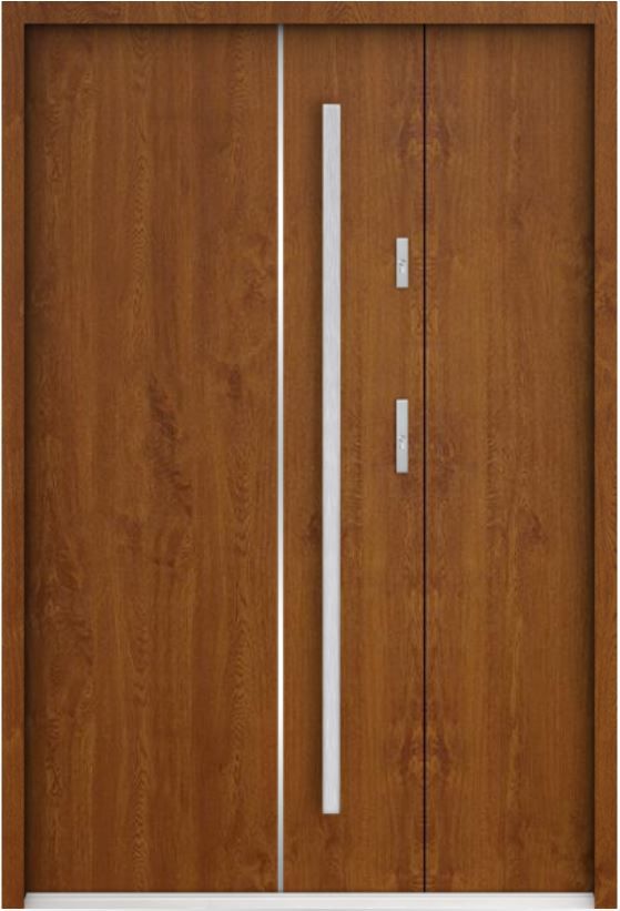 The door is made of stainless steel. Inside it is filled with PUR polyurethane foam and wood. The thickness of the door slab is 2.2 inch. Dual sealing system - one seal is in the dap of the frame and the other is located in the supporting part of the door slab. They reduce vibration and protect your house from losing the heat. They don't change their volume under the influence of atmospheric conditions. The door frame has anti-burglar reinforcements in hinge parts and locking points.