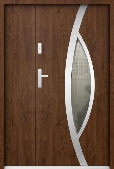 The door is made of stainless steel. Inside it is filled with PUR polyurethane foam and wood. The thickness of the door slab is 2.2 inch. Dual sealing system - one seal is in the dap of the frame and the other is located in the supporting part of the door slab. They reduce vibration and protect your house from losing the heat. They don't change their volume under the influence of atmospheric conditions. The door frame has anti-burglar reinforcements in hinge parts and locking points.