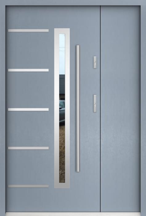 The door is made of stainless steel. Inside it is filled with PUR polyurethane foam and wood. The thickness of the door slab is 2.2 inch. Dual sealing system - one seal is in the dap of the frame and the other is located in the supporting part of the door slab. They reduce vibration and protect your house from losing the heat. They don't change their volume under the influence of atmospheric conditions. The door frame has anti-burglar reinforcements in hinge parts and locking points.