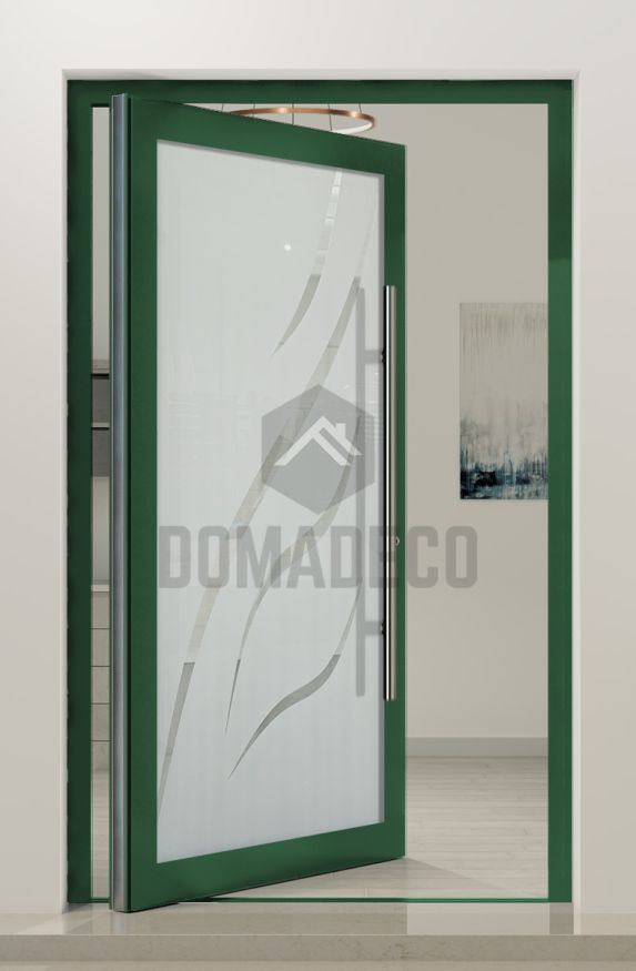 PIVOT Glass S11 - aluminum frosted pivot door with transparent decor