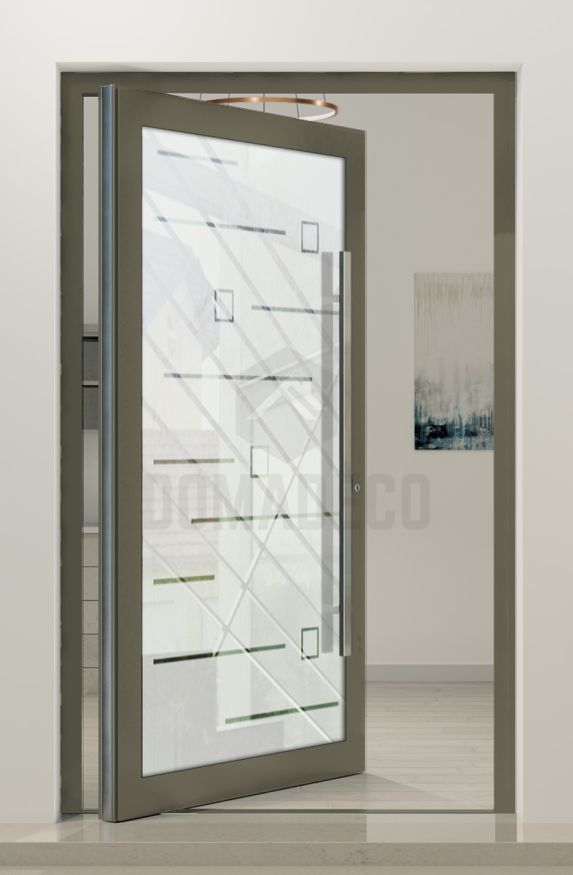 PIVOT Glass S20 - aluminum frosted pivot door with with transparent motif