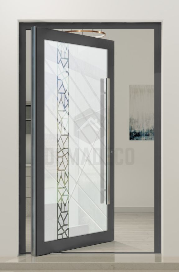 PIVOT Glass S21 - aluminum frosted pivot door with with transparent motif
