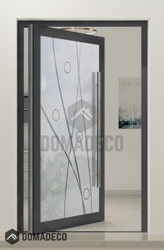 PIVOT Glass S22 - aluminum frosted pivot door with with transparent motif