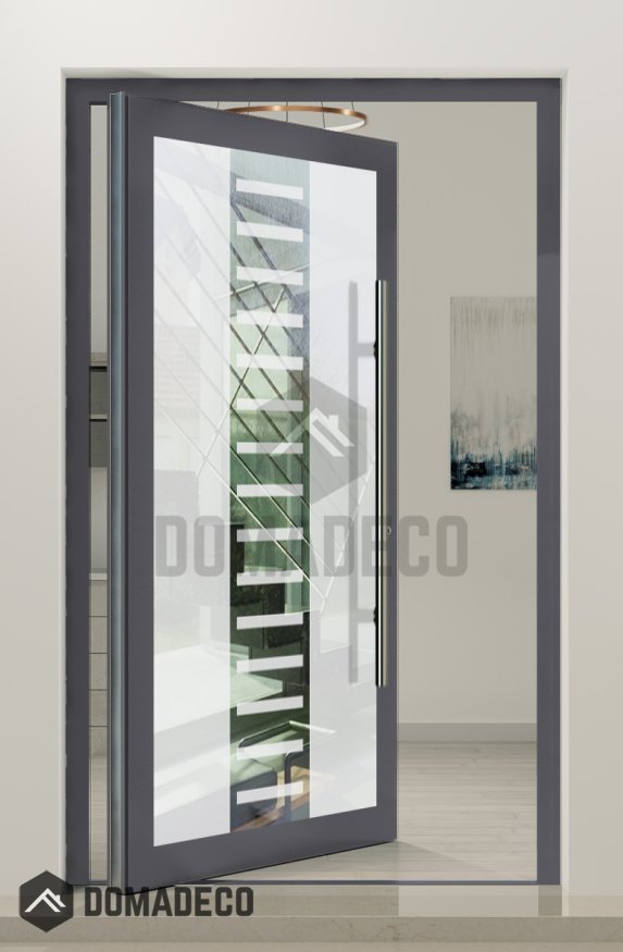 PIVOT Glass S6 - aluminum frosted pivot door with with transparent decor