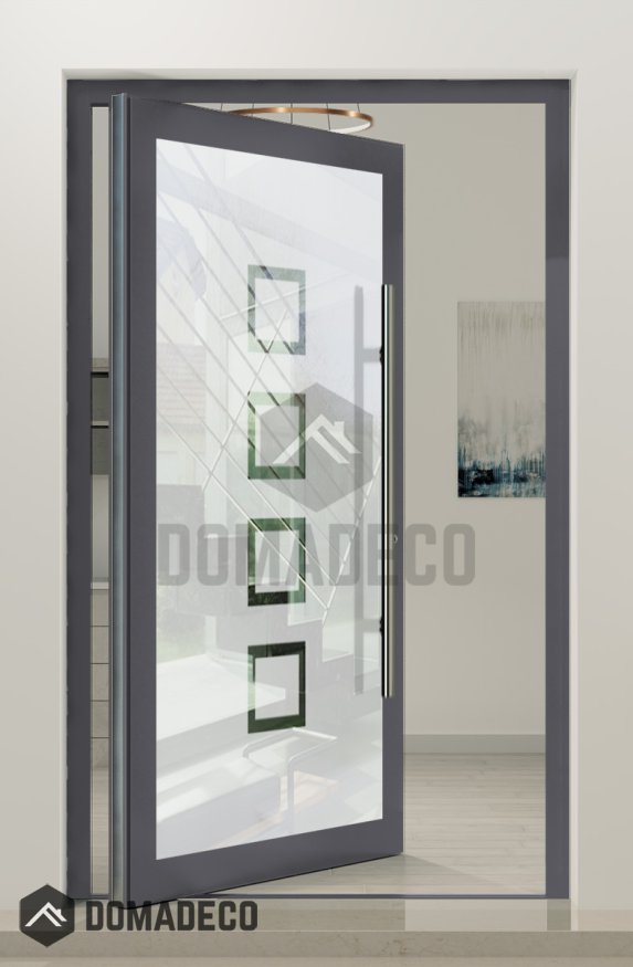 PIVOT Glass S8 - aluminum frosted pivot door with with transparent squares