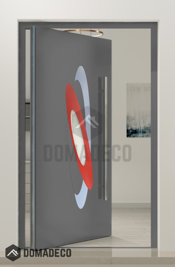 PIVOT INLAY - Aluminum pivot door door with colourful ovals