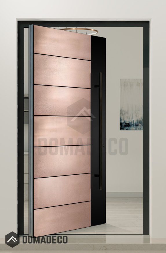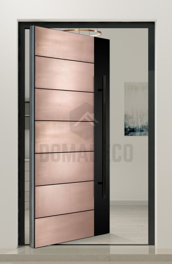 PIVOT M15 - aluminum pivot door with copper texture of milled metal