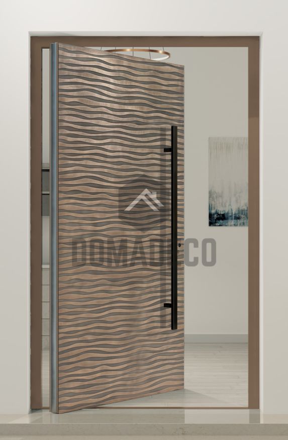 PIVOT M16 - aluminum front entry hinged door with texture of milled metal