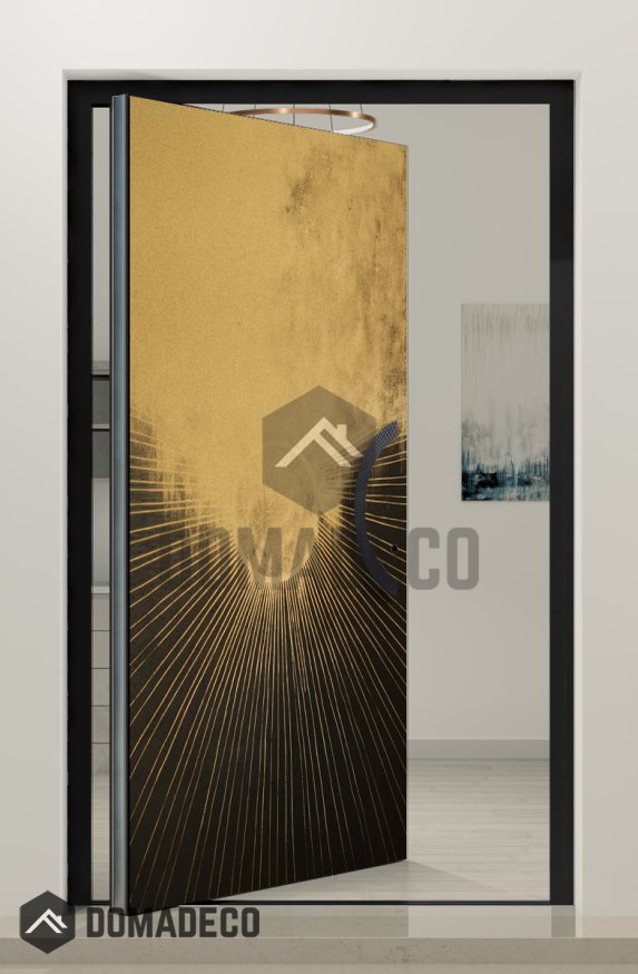PIVOT M20 - aluminum pivot door with gold texture of milled metal