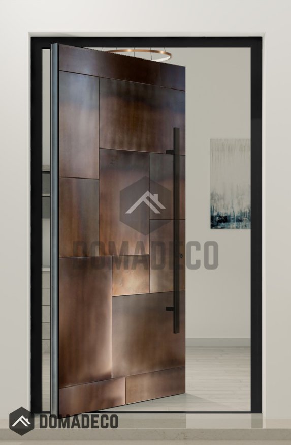 PIVOT M23 - aluminum pivot door with squareds in liquid metal