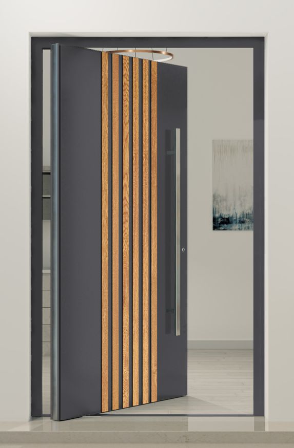 PIVOT RAIL5 - aluminium pivot door with vertical slats made of aluminium profiles