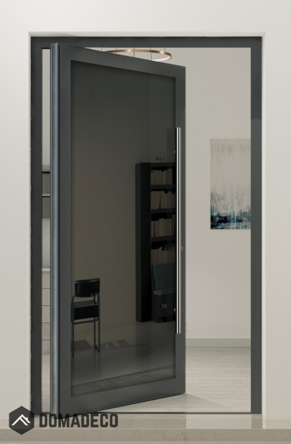 PIVOT VL19 - Lacobel glass coated with a high-quality paint aluminum pivot door