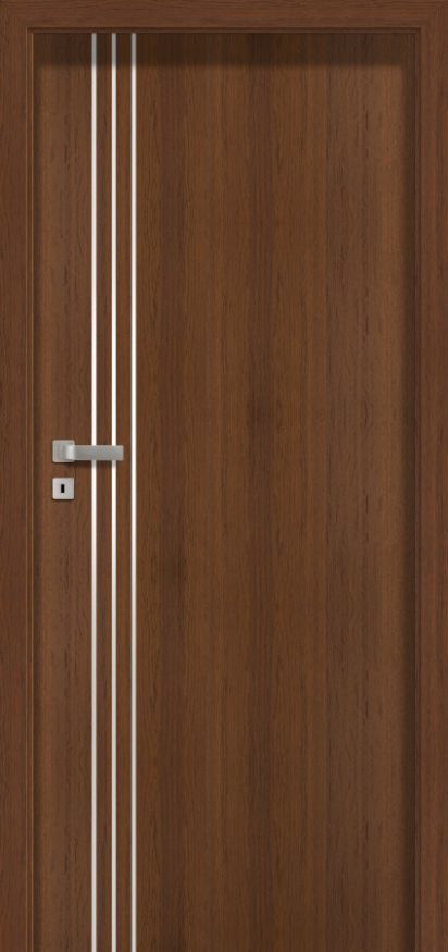 The door is made of a wooden rail and stile set topped with two flush HDF boards covered with LAMISTONE CPL, SILKSTONE surface finish.