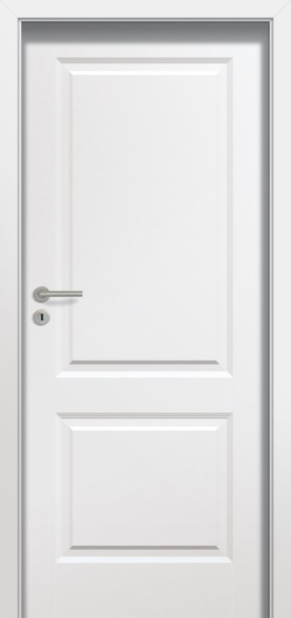 The door is made of a wooden rail and stile set topped with two flush HDF boards covered with ecological acrylic paint (RAL and NCS colour palette).