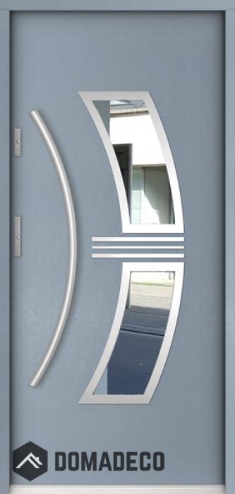 The door is made of stainless steel. Inside it is filled with PUR polyurethane foam and wood. The thickness of the door slab is 2.2 inch. Dual sealing system - one seal is in the dap of the frame and the other is located in the supporting part of the door slab. They reduce vibration and protect your house from losing the heat. They don't change their volume under the influence of atmospheric conditions. The door frame has anti-burglar reinforcements in hinge parts and locking points.