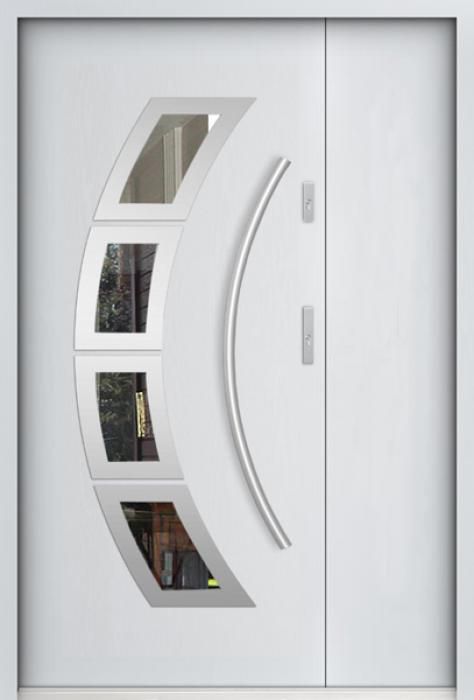 The door is made of stainless steel. Inside it is filled with PUR polyurethane foam and wood. The thickness of the door slab is 2.2 inch. Dual sealing system - one seal is in the dap of the frame and the other is located in the supporting part of the door slab. They reduce vibration and protect your house from losing the heat. They don't change their volume under the influence of atmospheric conditions. The door frame has anti-burglar reinforcements in hinge parts and locking points.
