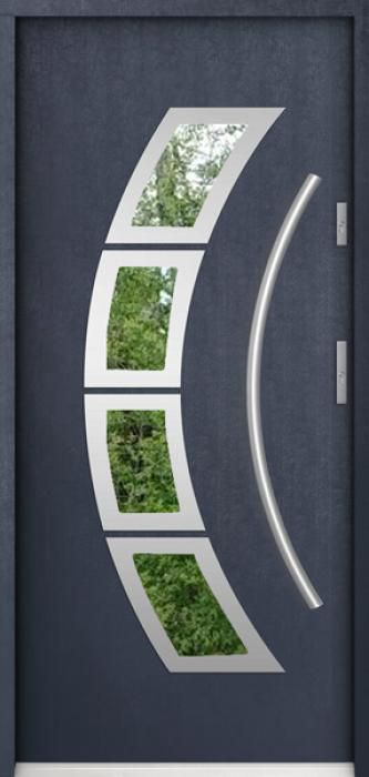 The door is made of stainless steel. Inside it is filled with PUR polyurethane foam and wood. The thickness of the door slab is 2.2 inch. Dual sealing system - one seal is in the dap of the frame and the other is located in the supporting part of the door slab. They reduce vibration and protect your house from losing the heat. They don't change their volume under the influence of atmospheric conditions. The door frame has anti-burglar reinforcements in hinge parts and locking points.