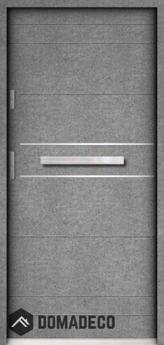The door is made of stainless steel. Inside it is filled with PUR polyurethane foam and wood. The thickness of the door slab is 2.2 inch. Dual sealing system - one seal is in the dap of the frame and the other is located in the supporting part of the door slab. They reduce vibration and protect your house from losing the heat. They don't change their volume under the influence of atmospheric conditions. The door frame has anti-burglar reinforcements in hinge parts and locking points.