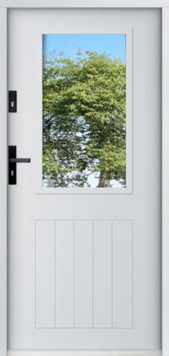 The door is made of stainless steel. Inside it is filled with PUR polyurethane foam and wood. The thickness of the door slab is 2.2 inch. Dual sealing system - one seal is in the dap of the frame and the other is located in the supporting part of the door slab. They reduce vibration and protect your house from losing the heat. They don't change their volume under the influence of atmospheric conditions. The door frame has anti-burglar reinforcements in hinge parts and locking points.